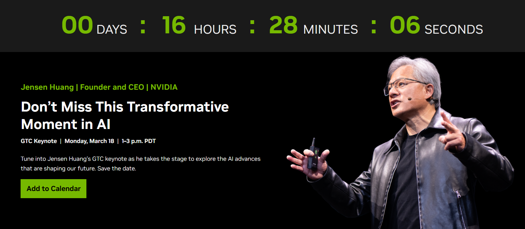 英伟达 GTC 大会将于 3 月 18 日至 21 日期间在圣何塞会议中心和线上同时举行。这是英伟达每年最重要的技术发布平台之一,被业界公认为“AI 风向标”。