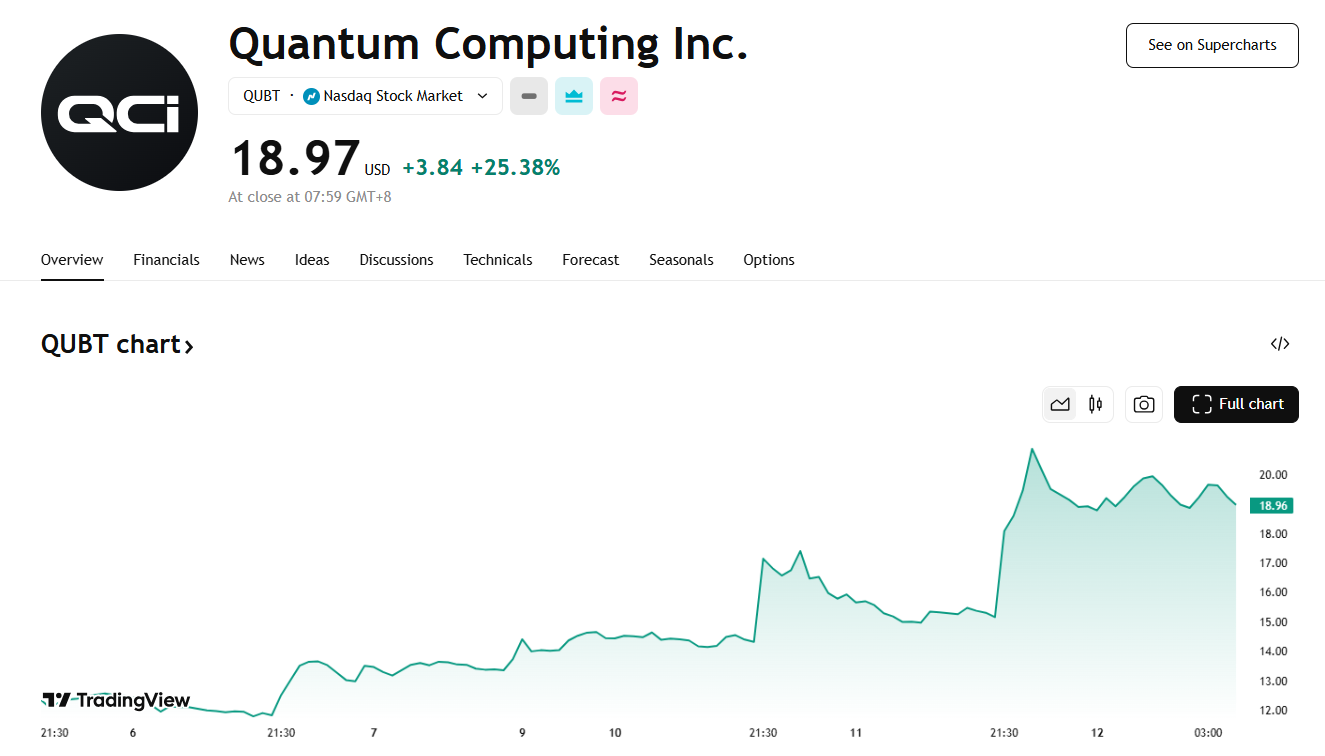 量子计算概念股集体上涨,QUBT 拉升约 25%
