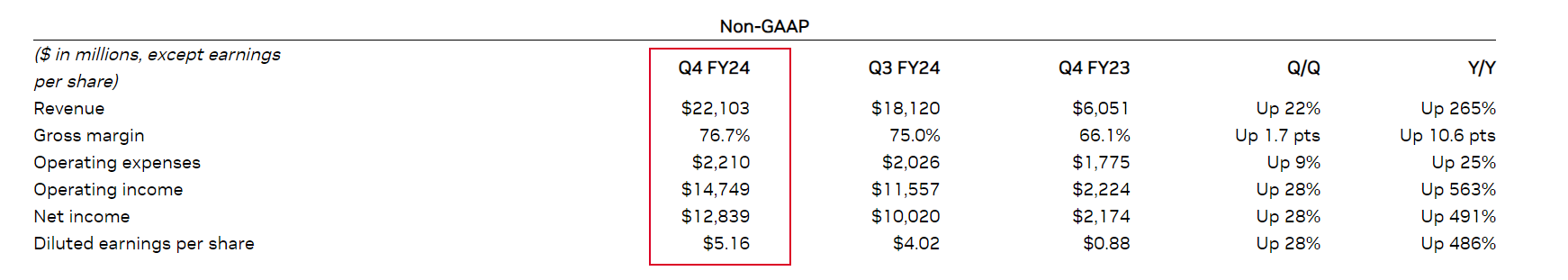 2 月 22 日,英伟达发布了 2023 年第四季度财务报告。报告显示,其营收达到了 221 亿美元,超出市场预期的 205.5 亿美元。每股收益(EPS)为 5.16 美元,高于预期的 4.61 美元。
