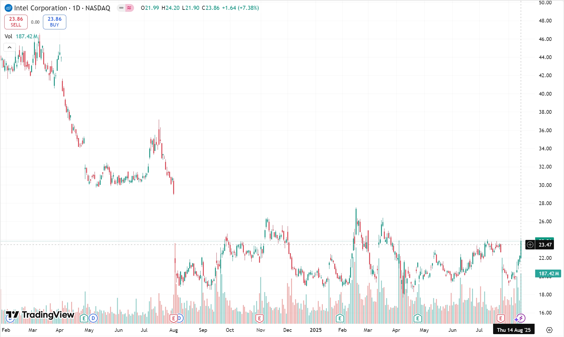 特朗普政府讨论对英特尔实施国家持股,英特尔收涨超 7%