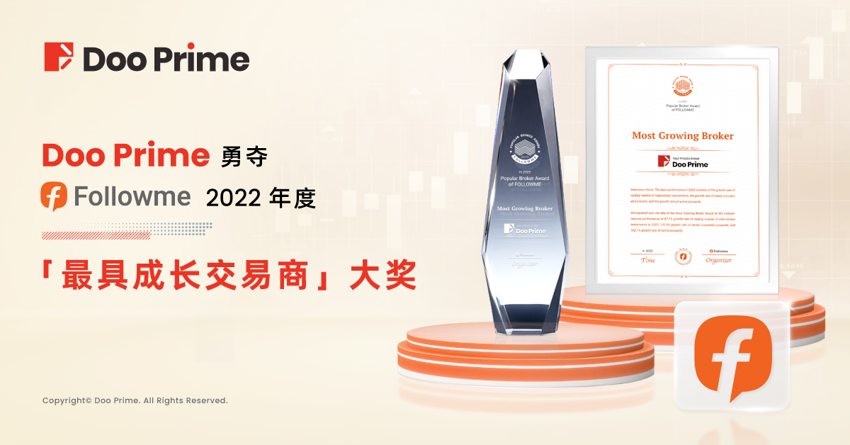 与此同时, Doo Prime 亦再次荣获了 FOLLOWME 颁发的 2022 年 “十大最受欢迎交易商” 奖项!Doo Prime 很荣幸和自豪能够保持佳绩,这也是对我们高速发展、不懈努力的肯定。