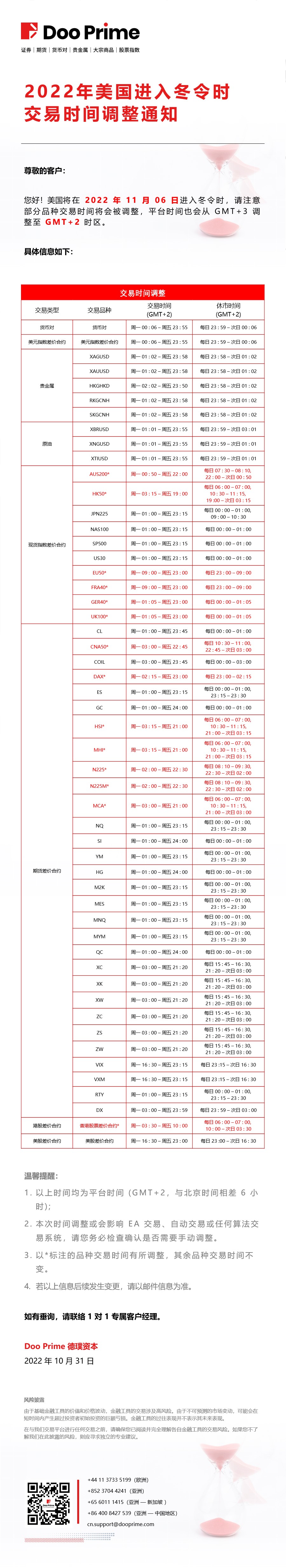 2026 年澳洲进入冬令时交易时间调整通知