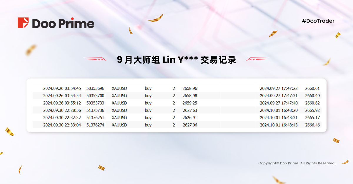 现在让我们一起回顾 9 月赛程的精彩瞬间,学习顶尖选手们脱颖而出的成功之道,向 #DooTrader 至尊杯十周年交易大赛中的冠军宝座发起冲击,瓜分高达 180,000 美元的奖金池!