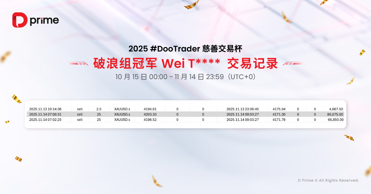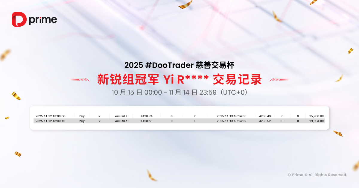 值得关注的是,2025 #DooTrader 慈善杯交易杯不仅是一场较量,更是一个传递爱心的公益活动。每当您在比赛中完成 1 手交易,D Prime 都将代表您捐出 0.1 美元,帮助改善贫困儿童的教育条件,让您的每一笔交易助力点亮更多孩子的未来。