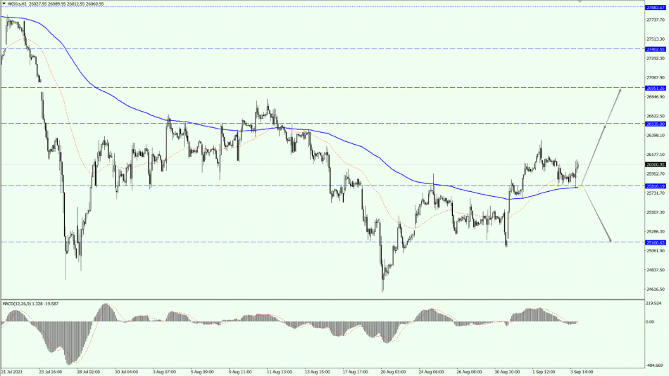 Today, on HK50, pay attention to the support of the 25816 line. If it crosses the 25816 line above, it will maintain a bullish trend. Then, focus on the suppression strength of the two positions of 26535 and 26951 above. If HK50 falls below the 25816 line, then it will test the support of the 25160 line again.