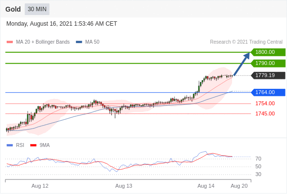 Long positions above 1764.00 with targets at 1790.00 & 1800.00 in extension.