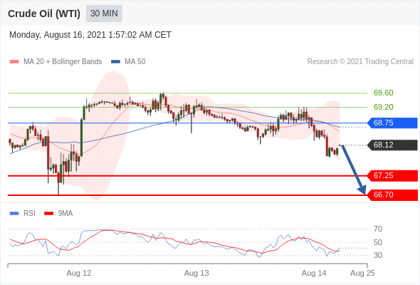 Short positions below 68.75 with targets at 67.25 & 66.70 in extension.