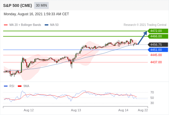 Long positions above 4451.00 with targets at 4466.00 & 4472.00 in extension.