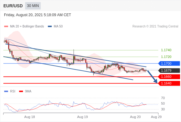 Short positions below 1.1700 with targets at 1.1660 & 1.1640 in extension.
