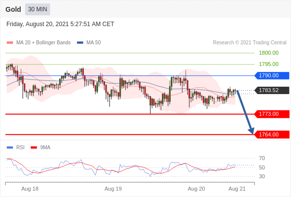 As long as the resistance at 1790.00 is not surpassed, the risk of the break below 1773.00 remains high.