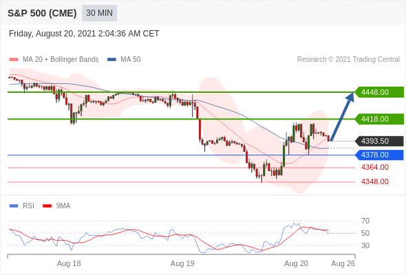 Long positions above 4378.00 with targets at 4418.00 & 4448.00 in extension.