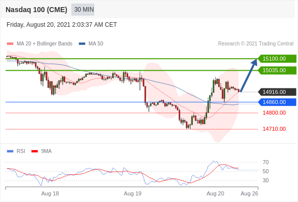 Long positions above 14860.00 with targets at 15035.00 & 15100.00 in extension.