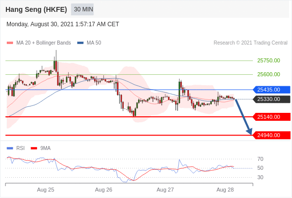 A break below 25140.00 would trigger a drop towards 24940.00.