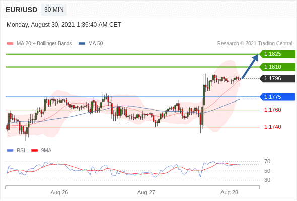 Long positions above 1.1775 with targets at 1.1810 & 1.1825 in extension.