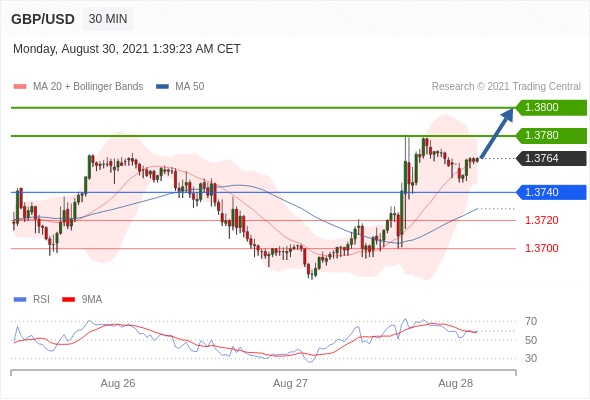Long positions above 1.3740 with targets at 1.3780 & 1.3800 in extension.