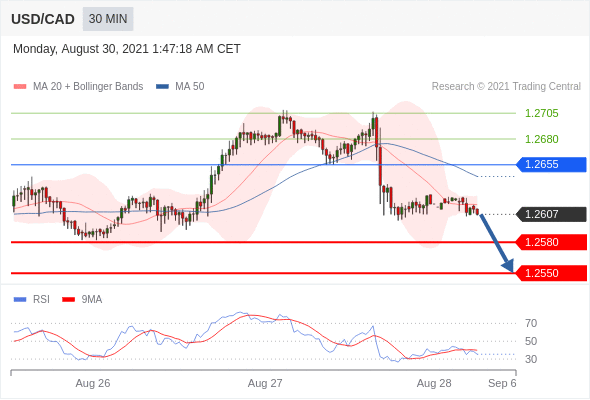 Short positions below 1.2655 with targets at 1.2580 & 1.2550 in extension.