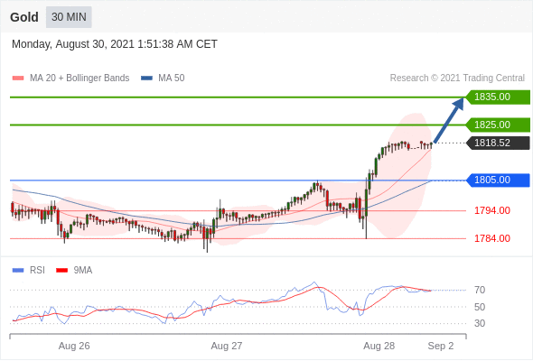 Long positions above 1805.00 with targets at 1825.00 & 1835.00 in extension.