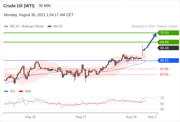 The break above 68.55 is a positive signal that has opened a path to 69.85.