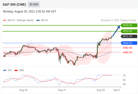 The break above the resistance at 4500.00 triggered an upward acceleration to 4520.00.