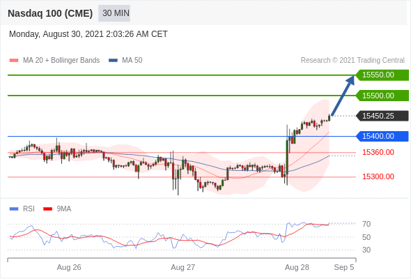 Long positions above 15400.00 with targets at 15500.00 & 15550.00 in extension.
