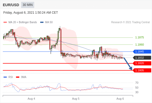 Short positions below 1.1845 with targets at 1.1820 & 1.1805 in extension.