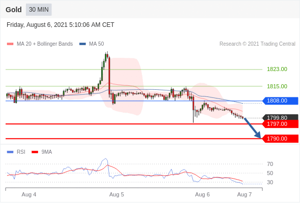 Short positions below 1808.00 with targets at 1797.00 & 1790.00 in extension.