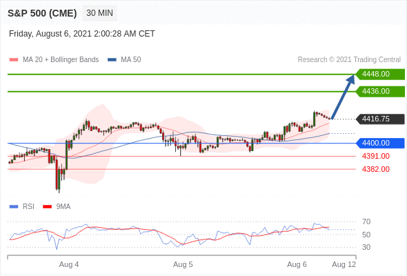 Long positions above 4400.00 with targets at 4436.00 & 4448.00 in extension.