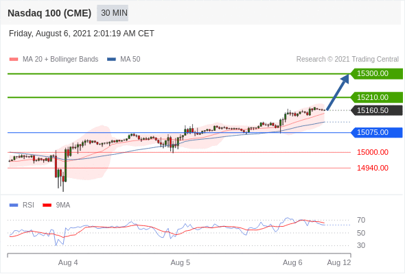 Long positions above 15075.00 with targets at 15210.00 & 15300.00 in extension.