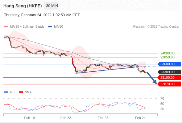 Short positions below 23600.00 with targets at 23100.00 & 22870.00 in extension.