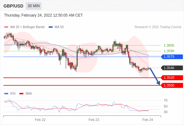 Short positions below 1.3575 with targets at 1.3520 & 1.3500 in extension.