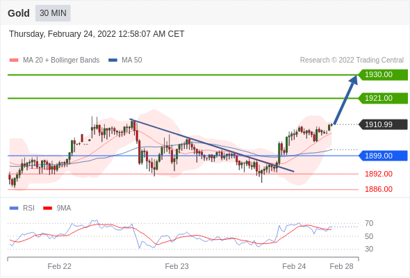 Long positions above 1899.00 with targets at 1921.00 & 1930.00 in extension.