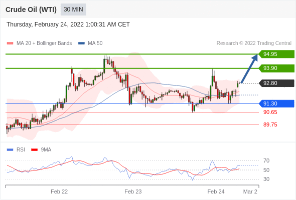 Long positions above 91.30 with targets at 93.90 & 94.95 in extension.