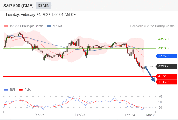 Short positions below 4273.00 with targets at 4172.00 & 4145.00 in extension.