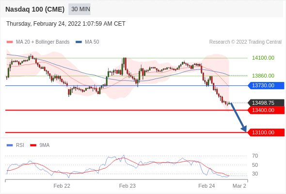 Short positions below 13730.00 with targets at 13400.00 & 13100.00 in extension.