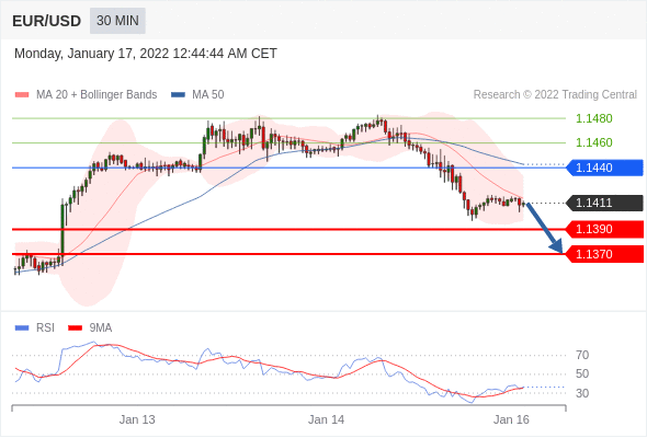 Short positions below 1.1440 with targets at 1.1390 & 1.1370 in extension.