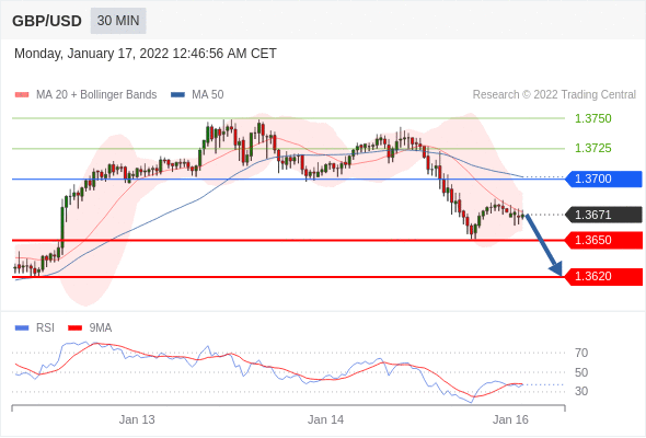 Short positions below 1.3700 with targets at 1.3650 & 1.3620 in extension.