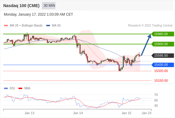 Long positions above 15430.00 with targets at 15800.00 & 15980.00 in extension.