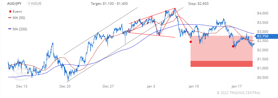 We found a pattern called Megaphone Top on 2022 Jan 07 at 14:00 GMT on a 1 hour chart, providing a target price for up to 2 weeks in the range of 81.100 to 81.400.