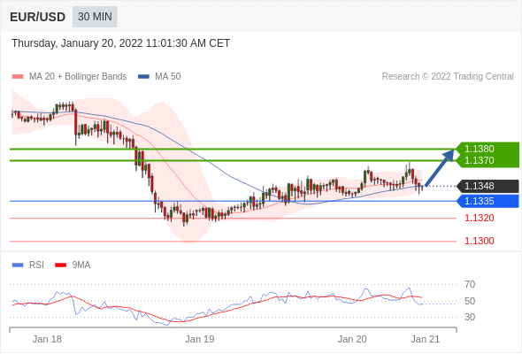 Long positions above 1.1335 with targets at 1.1370 & 1.1380 in extension.