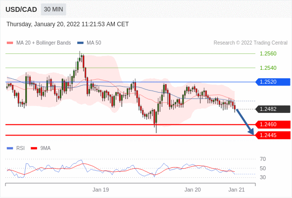Short positions below 1.2520 with targets at 1.2460 & 1.2445 in extension.