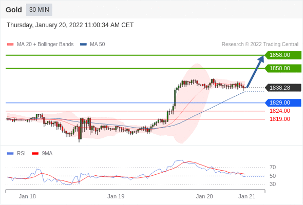 Long positions above 1829.00 with targets at 1850.00 & 1858.00 in extension.
