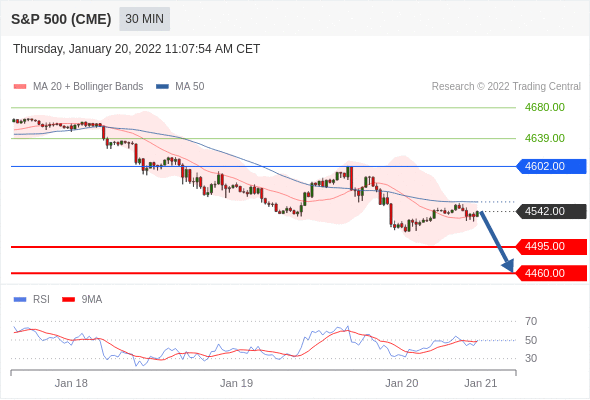 As long as the resistance at 4602.00 is not surpassed, the risk of the break below 4495.00 remains high.