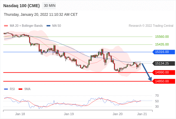 As long as the resistance at 15316.00 is not surpassed, the risk of the break below 14990.00 remains high.