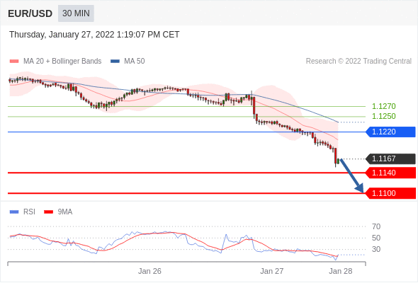 Short positions below 1.1220 with targets at 1.1140 & 1.1100 in extension.