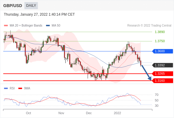 Short positions below 1.3600 with targets at 1.3265 & 1.3160 in extension.