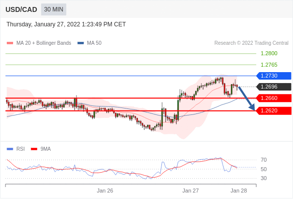 Short positions below 1.2730 with targets at 1.2660 & 1.2620 in extension.