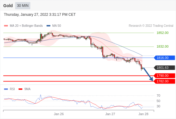 Short positions below 1816.00 with targets at 1790.00 & 1782.00 in extension.