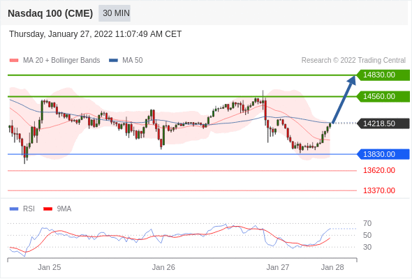 Long positions above 13830.00 with targets at 14560.00 & 14830.00 in extension.