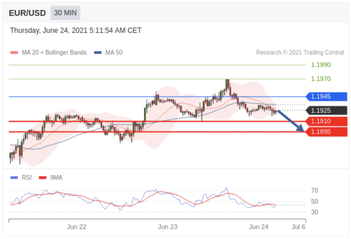 Short positions below 1.1945 with targets at 1.1910 & 1.1895 in extension.