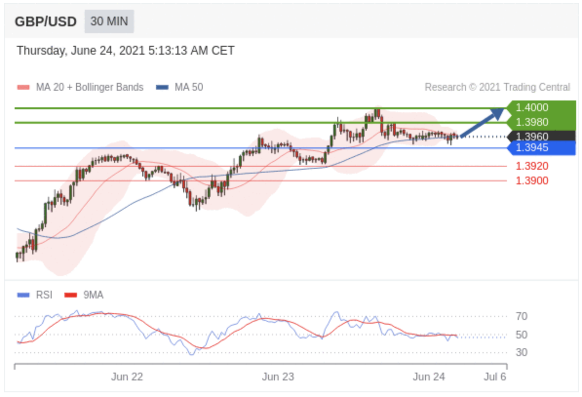 Long positions above 1.3945 with targets at 1.3980 & 1.4000 in extension.
